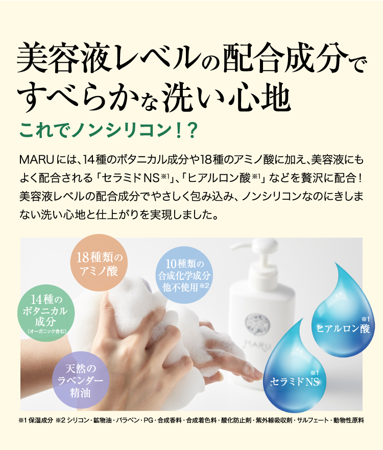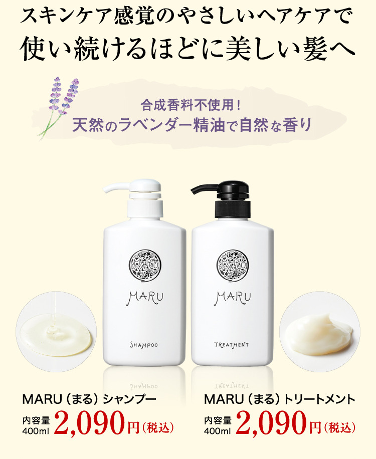 [例2]MARUシャンプー・ボトル(400ml入り)3ヵ月に1回・3本(10%割引)のお届けを3回継続した場合の支払総額は、「5,643円(税込)×3回」=16,929円(税込)。※送料無料